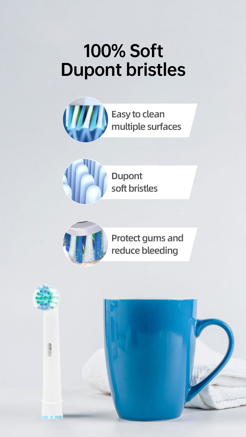 【ДОДАТКОВІ змінні насадки для щіток служать 2 роки】Обертова електрична зубна щітка постачається з додатковими насадками DuPont, якими можна користуватися протягом 2 років. Ви можете поділитися зубною щіткою, а коміри різних кольорів можна використовувати, щоб відрізнити головки зубних щіток різних членів сім’ї. Ви зрозумієте, що настав час змінити насадку для щітки