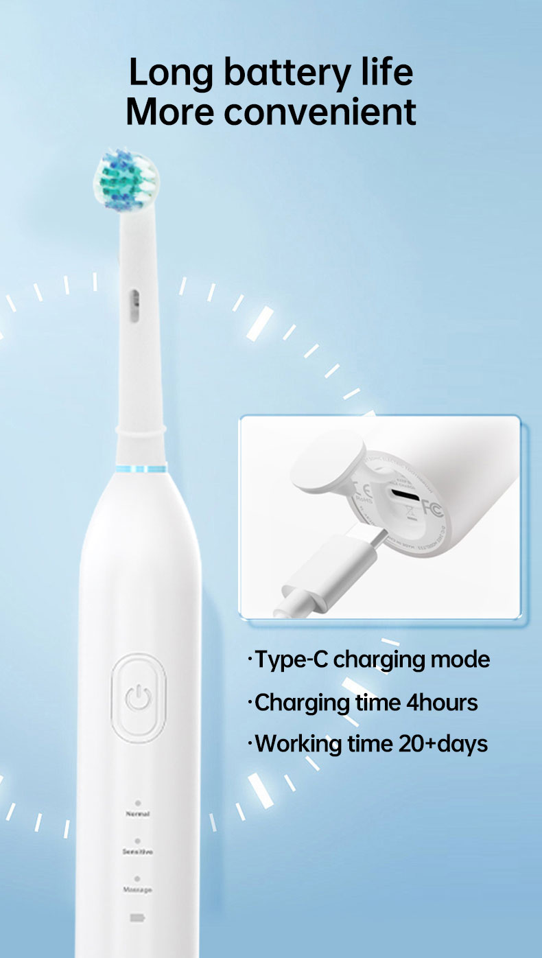 【30-денний термін служби батареї】 Електрична зубна щітка оснащена 4-годинним акумулятором швидкої зарядки, який працює до 30 днів, значно перевершуючи інші зубні щітки на ринку. ви завжди можете використовувати цю зубну щітку під час подорожі або у відрядженні
