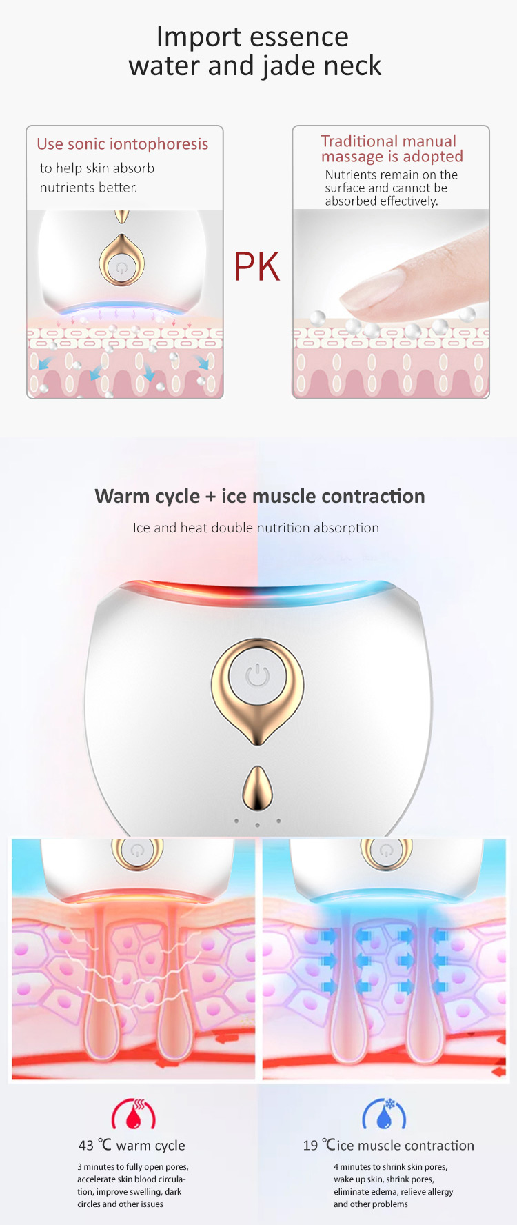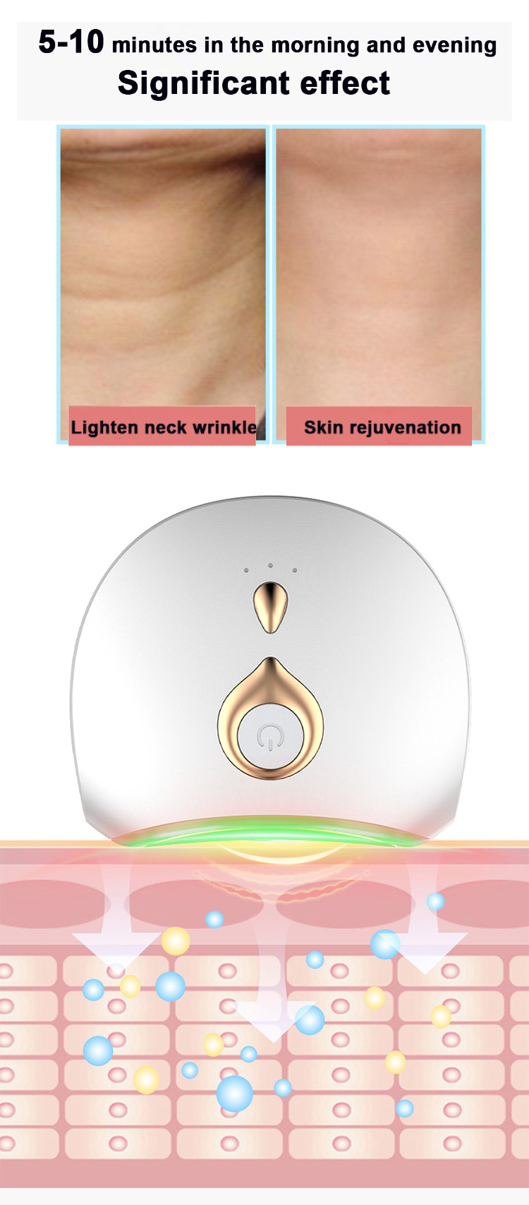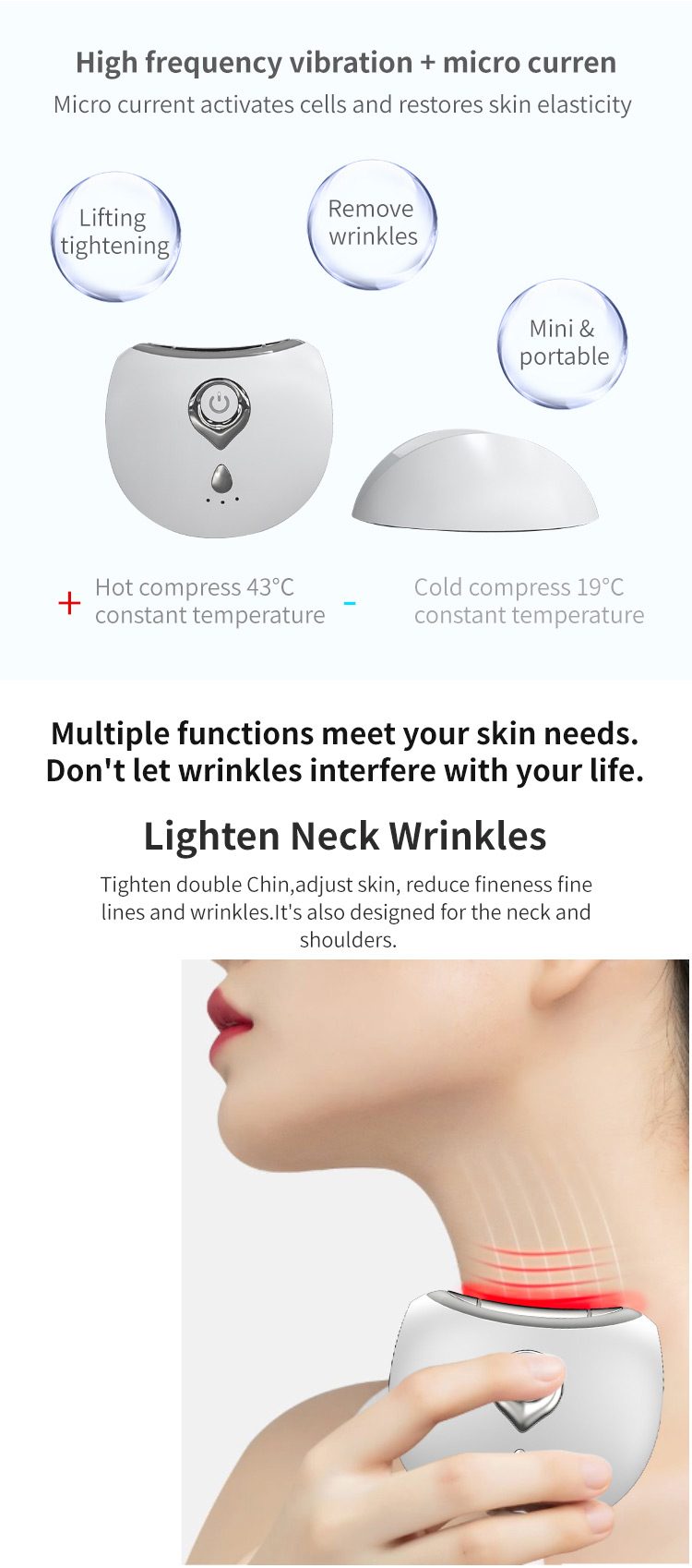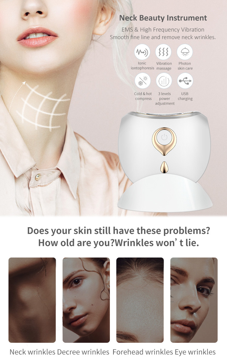 EMS і високочастотна вібрація, розгладжують тонкі лінії та видаляють зморшки на шиї