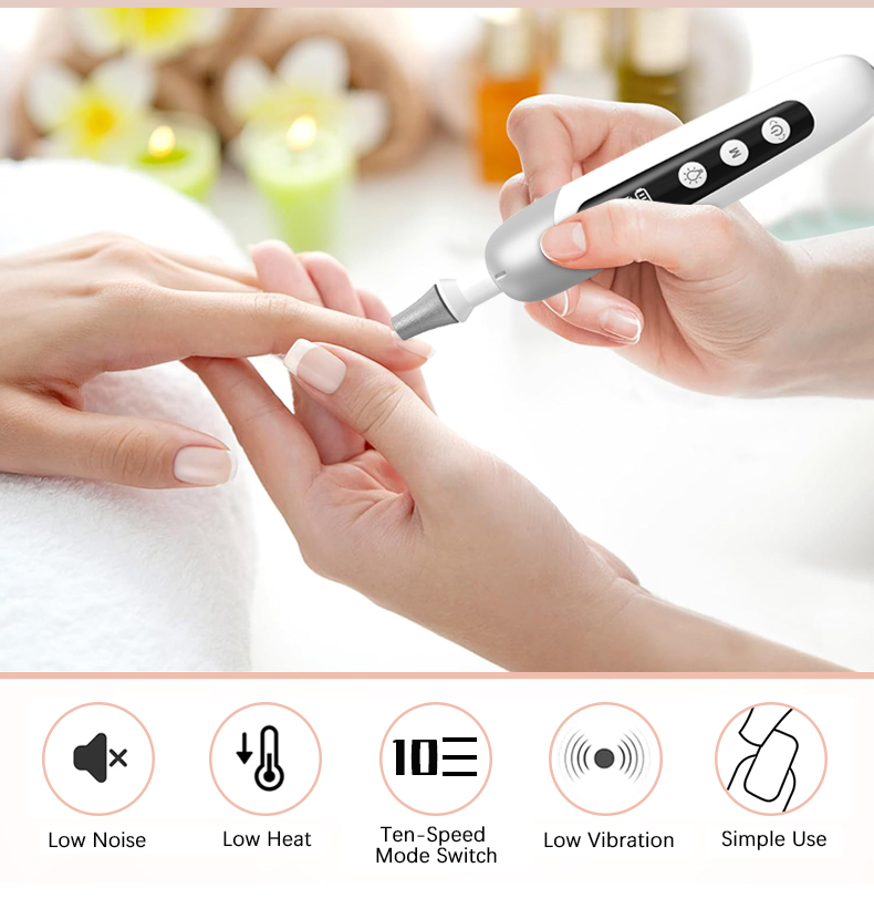 - 10 НАЛАШТУВАНЬ ШВИДКОСТІ: відчуйте потужність нашого електричного манікюрного набору з 10 прогресивними налаштуваннями швидкості та універсальними обертаннями за та проти годинникової стрілки. Бормашина для нігтів efile гарантує точне підпилювання товстих нігтів на руках і ногах і призначена для всіх типів шкіри, включно з людьми з діабетом.