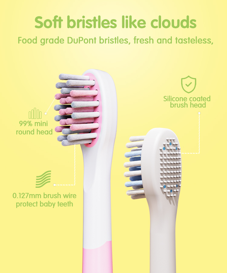- ЧИЩЕННЯ ЗУБІВ З ЗАХВОРОМ І З ВЕСЕЛОЮ: оформлення в стилі милих тварин. Нехай ваші діти закохаються в чистку зубів. Унікальна маленька насадка для щітки з 3D-вигнутою м’якою щетиною, зручна та ефективна, ідеально підходить для дитячих ясен і маленького рота.
