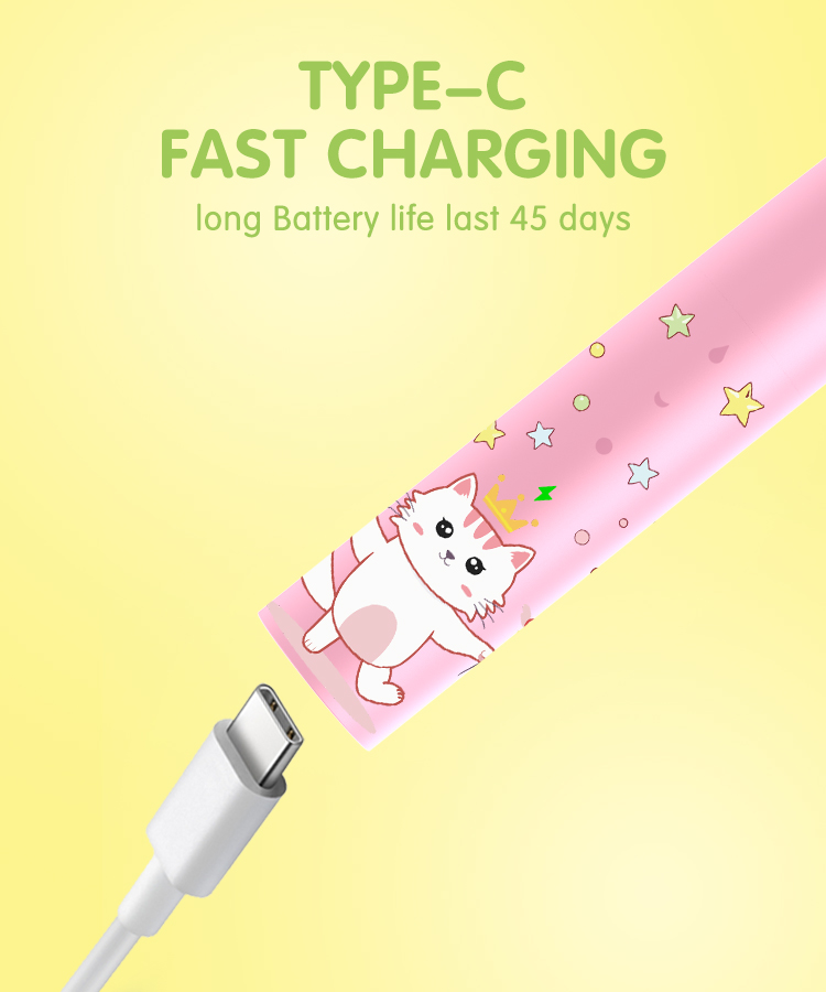 - ДУЖЕ ДОВГИЙ ТЕРМІН ГОРІННЯ: Ця акумуляторна дитяча електрична зубна щітка потребує лише 3-4 годин заряджання та працює до 60 днів. Його легко використовувати вдома та під час подорожі, щоб дотримуватися щоденного чищення зубів.