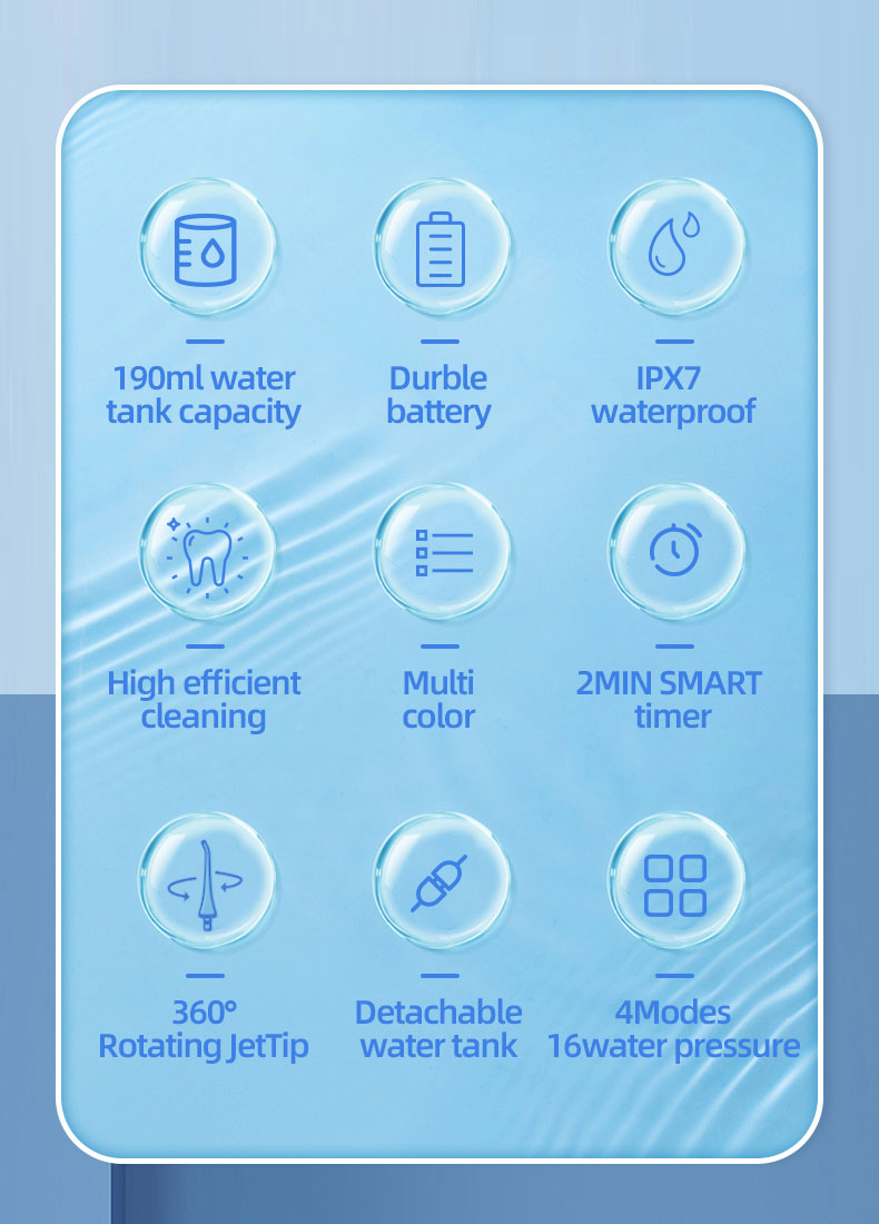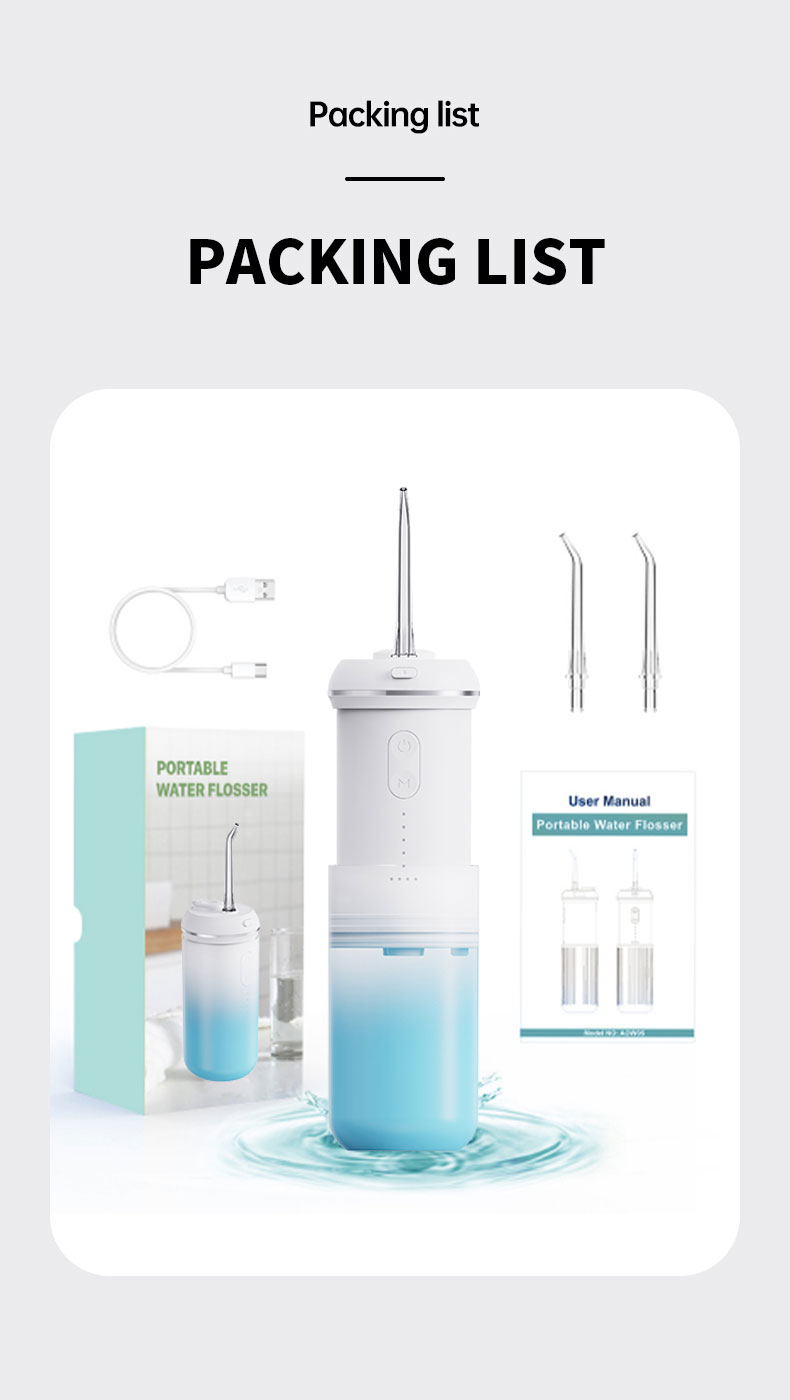 - Глибоке очищення, покращення здоров’я: бездротова водяна зубна нитка, схвалена американськими експертами-стоматологами, ця водяна зубна нитка може запропонувати двопотоковий імпульс води під високим тиском 1400-1800 разів/хв і сильний тиск води 30-120 фунтів на квадратний дюйм для досягнення глибокого очищення зубів. . Ця кирка для очищення води може ефективно вирішити та запобігти різноманітним проблемам, таким як кровоточивість ясен, неприємний запах з рота та гниття